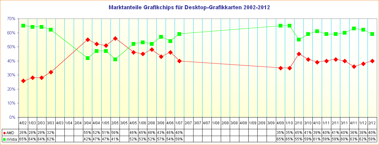 Marktanteile Grafikchips für Desktop-Grafikkarten 2002-2012