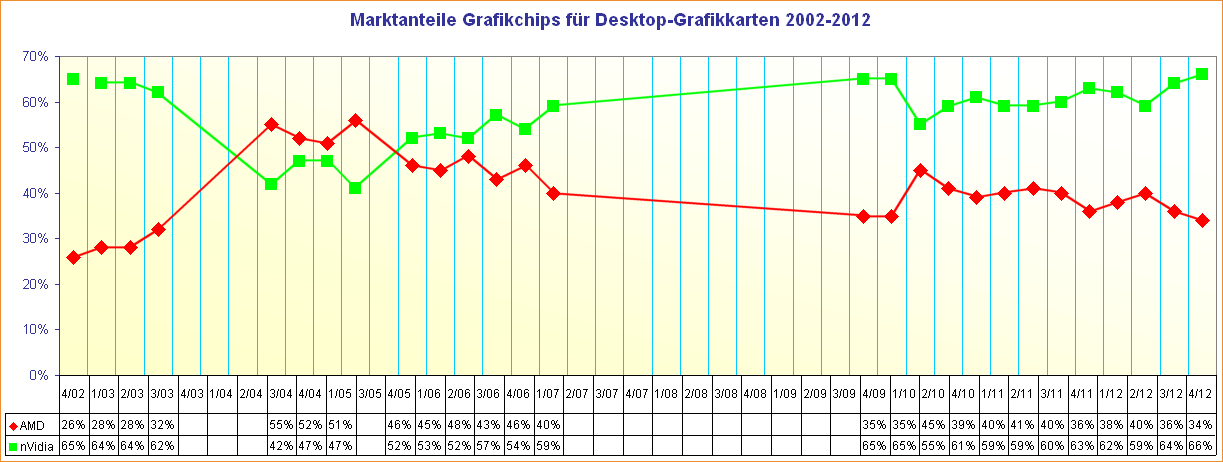 Marktanteile Grafikchips für Desktop-Grafikkarten 2002-2012