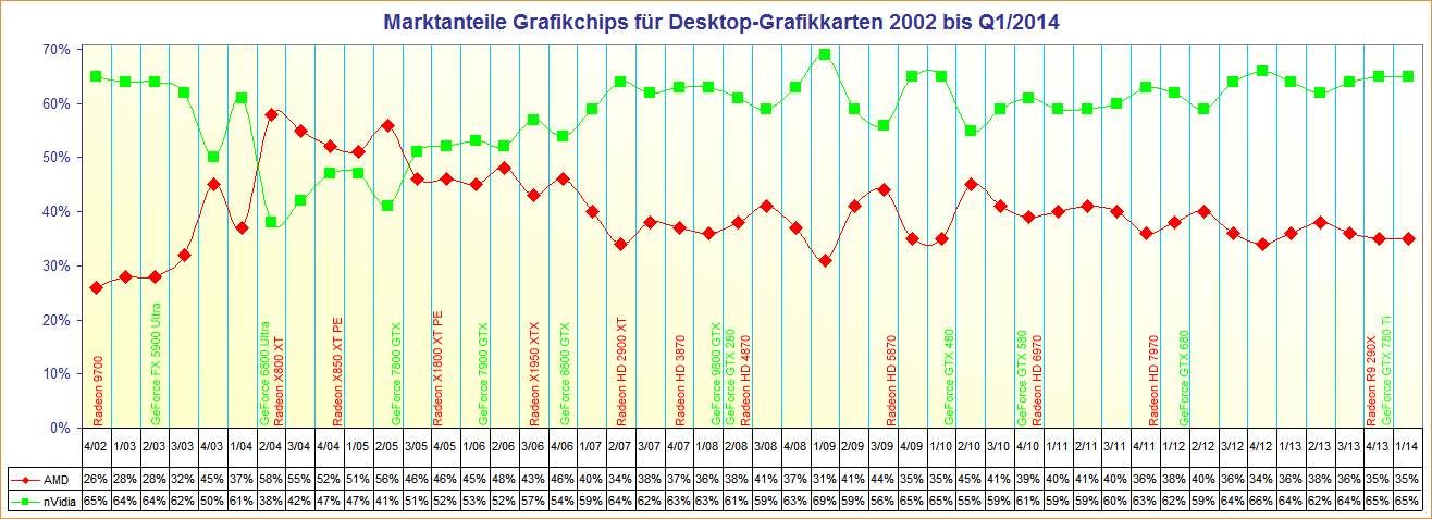 Marktanteile Grafikchips für Desktop-Grafikkarten 2002 bis Q1/2014