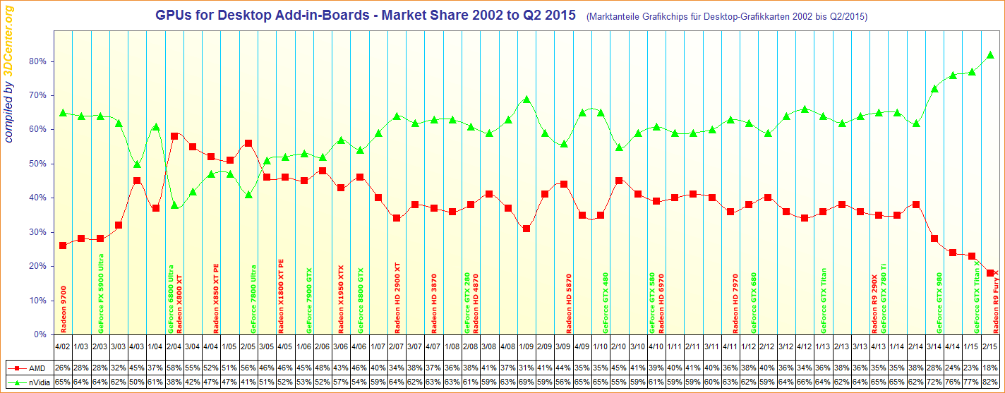 Marktanteile Grafikchips für Desktop-Grafikkarten 2002 bis Q2/2015