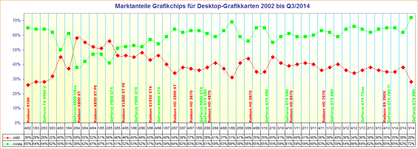Marktanteile Grafikchips für Desktop-Grafikkarten 2002 bis Q3/2014