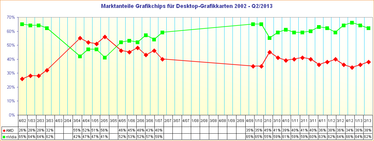Marktanteile Grafikchips für Desktop-Grafikkarten 2002 - Q2/2013
