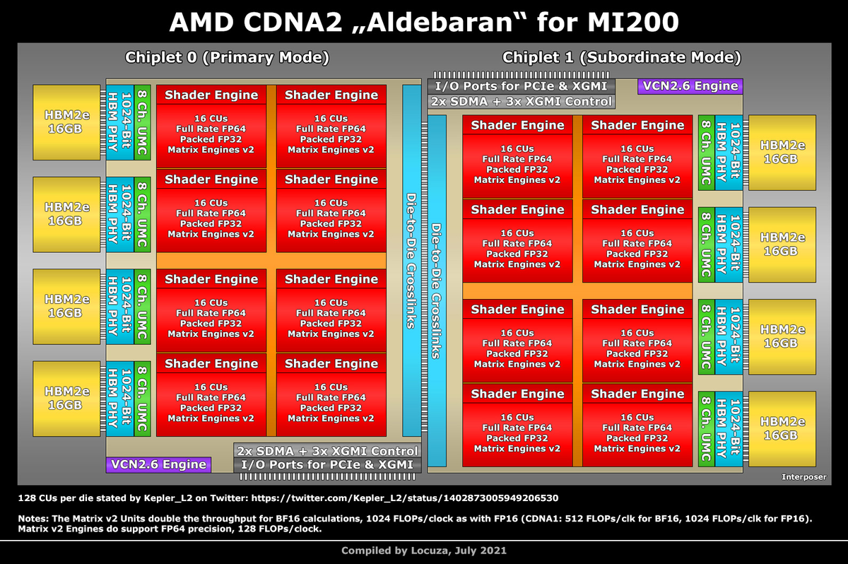 (Nutzer-erstelltes) AMD "Aldebaran" Block-Diagramm (by Locuza)