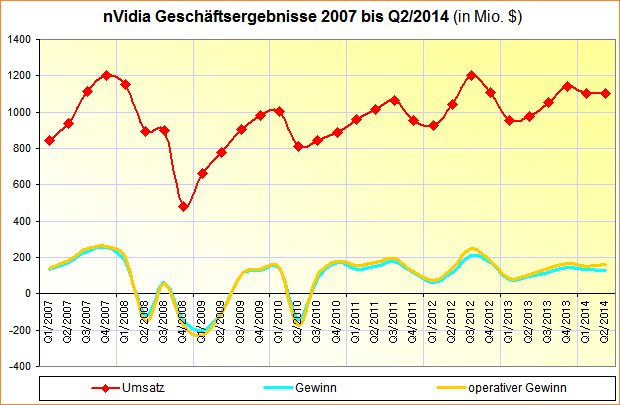 nVidia Geschäftsergebnisse 2007 bis Q2/2014