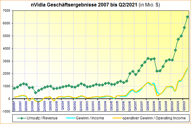 nVidia Geschäftsergebnisse 2007 bis Q2/2021