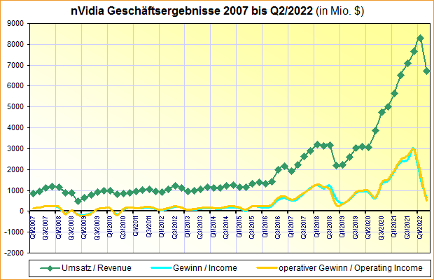 nVidia Geschäftsergebnisse 2007 bis Q2/2022
