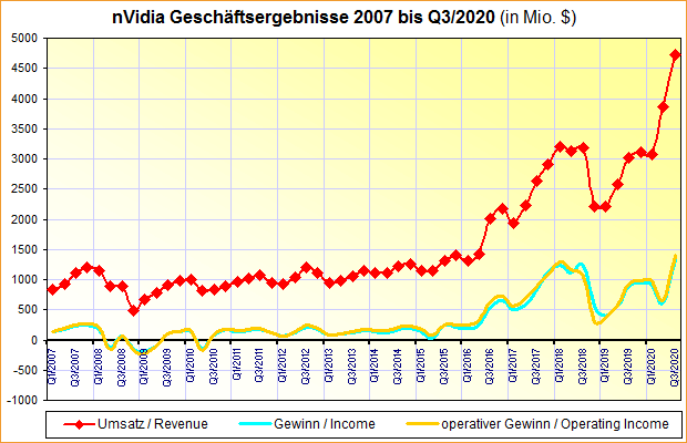 nVidia Geschäftsergebnisse 2007 bis Q3/2020