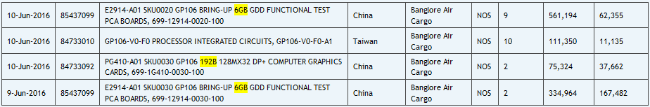nVidia GP106-Chip Lieferungen Juni 2016 @ Zauba