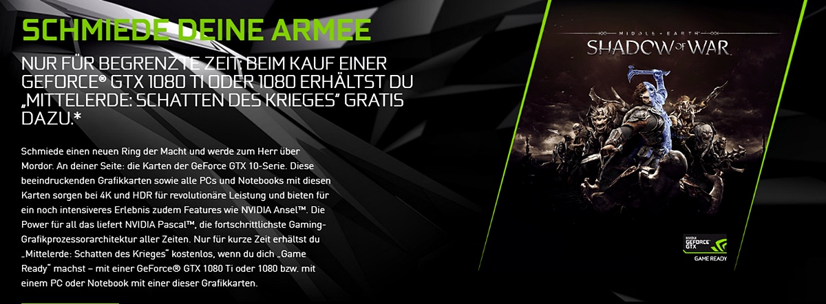 nVidia "Mittelerde: Schatten des Krieges" Spielebundle