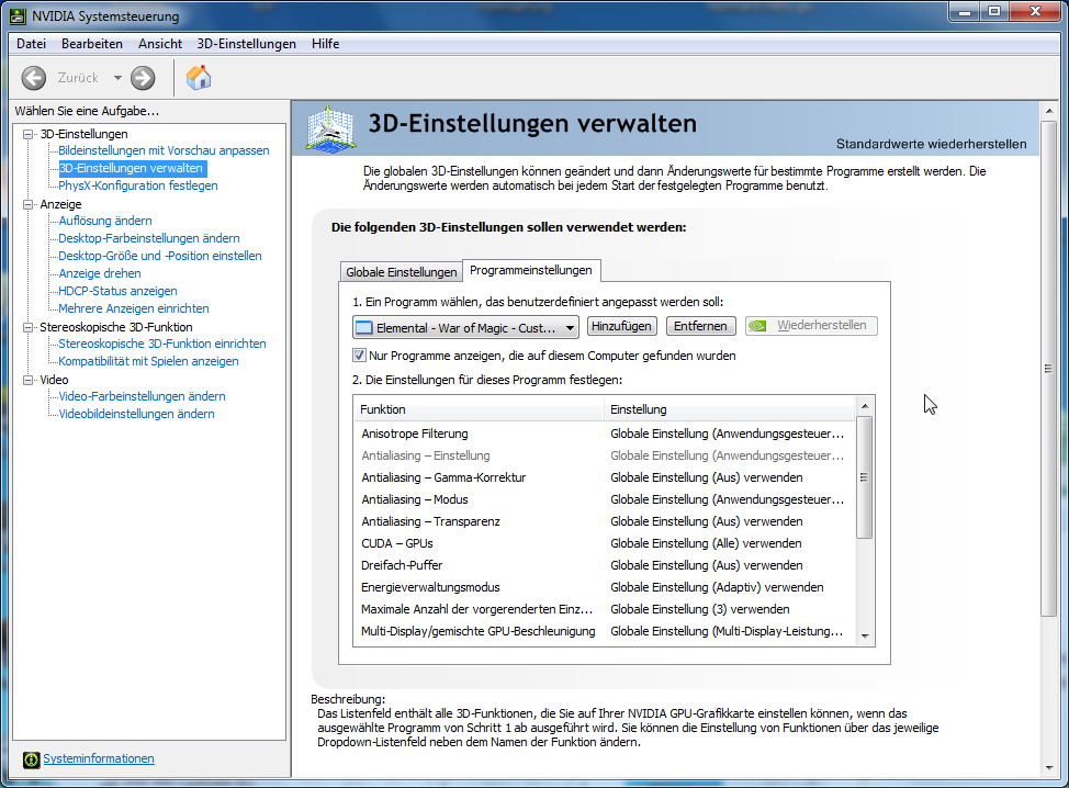 nVidia-Profilverwaltung