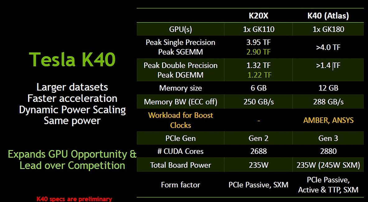 nVidia Tesla K40 Spezifikationen