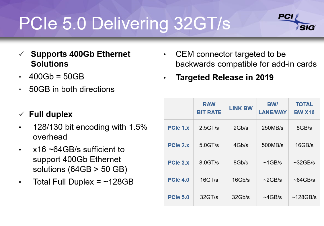 PCI-SIG PCI Express 1.x bis 5.0 Bandbreiten