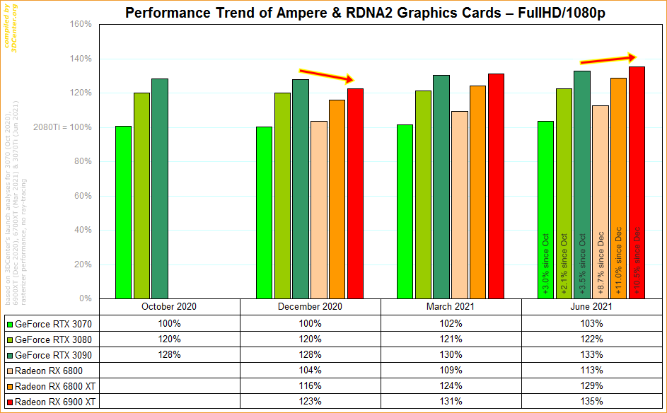 Performance-Entwicklung nVidia Ampere vs. AMD RDNA2 @ FullHD/1080p