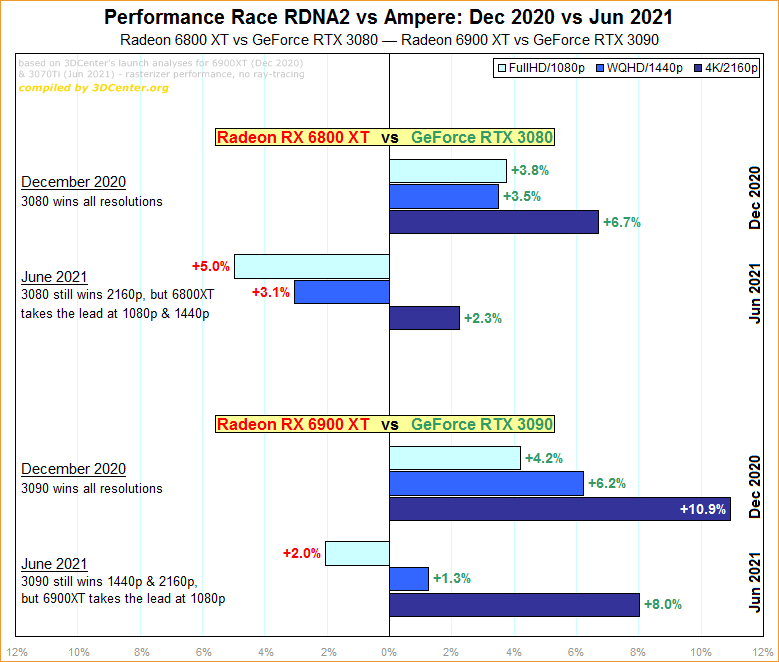 Performance-Rennen AMD RDNA2 vs. nVidia Ampere: Dezember 2020 zu Juni 2021