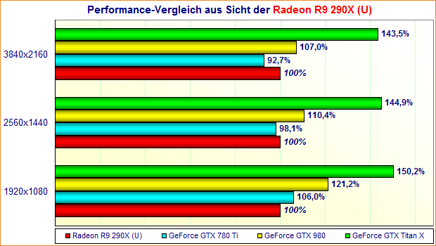 Performance-Vergleich aus Sicht der Radeon R9 290X (U)