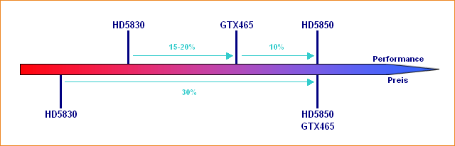 Performance/Preis-Verhältnis Radeon HD 5830, GeForce GTX 465 & Radeon HD 5850