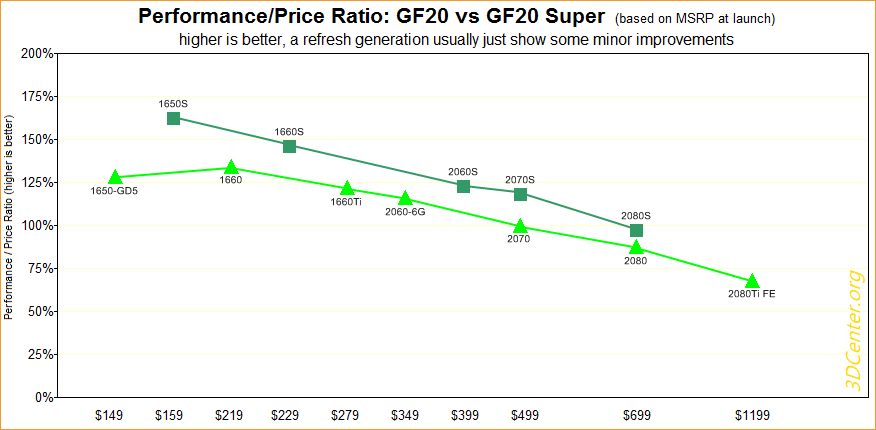 Performance/Preis-Verhältnisse GeForce 16/20 vs GeForce 16/20 Super