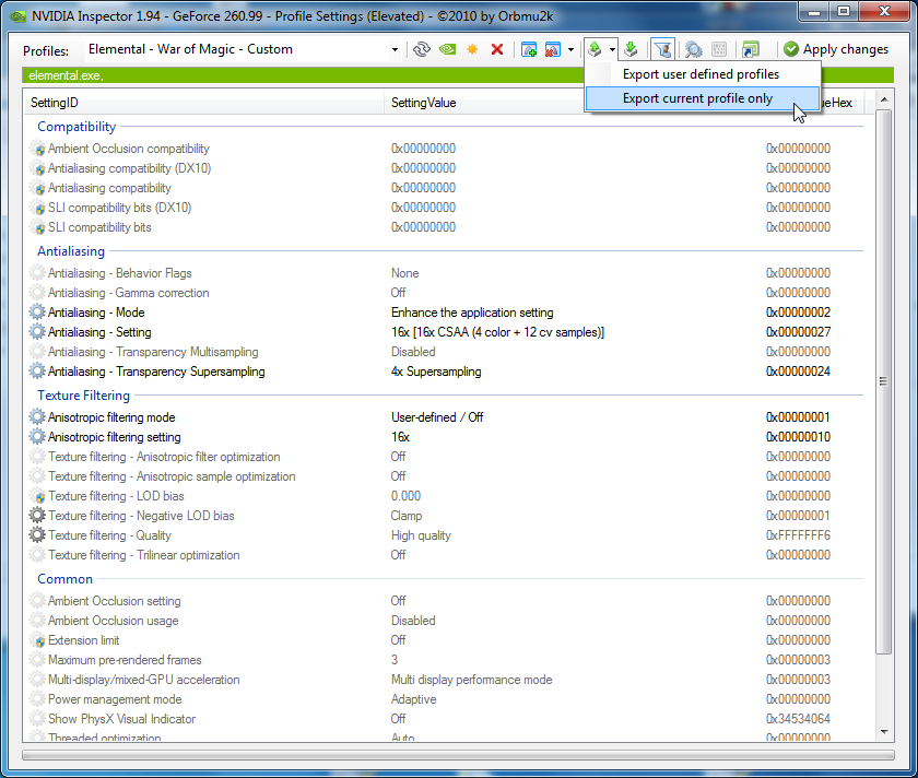 Profileditor: Export current profile only
