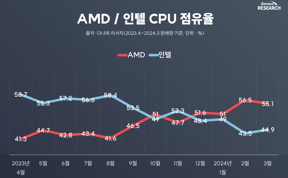 Prozessoren-Marktverteilung 2023/24 bei Danawa, Südkorea