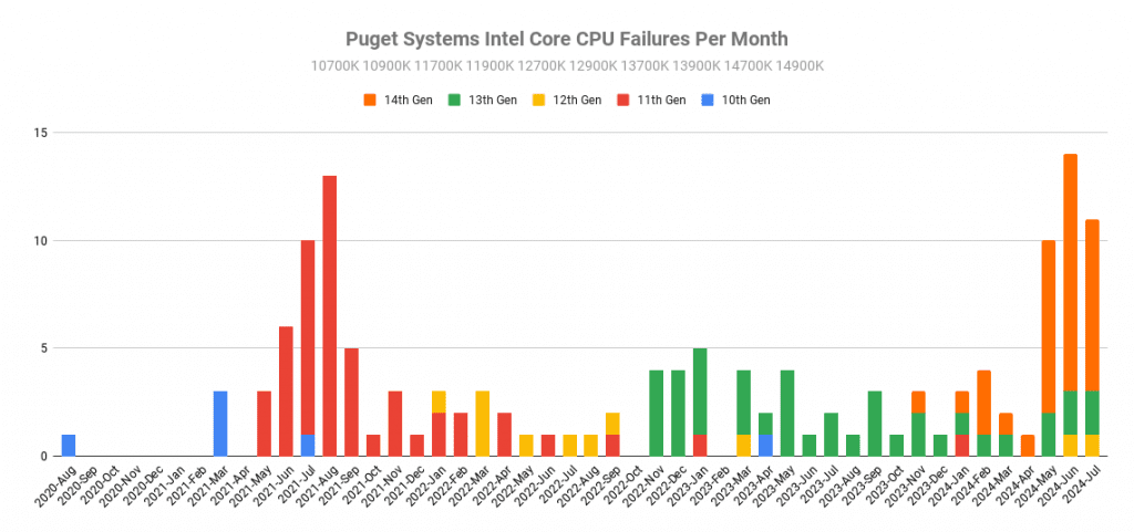 Puget Systems CPU Intel Core CPU Failures Per Month