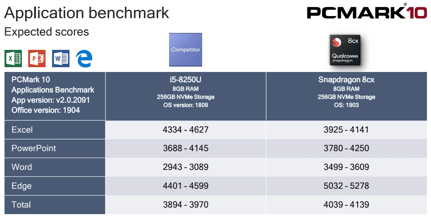Qualcomm "Snapdragon 8cx" Anwendungs-Benchmarks