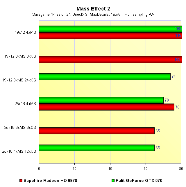 Radeon HD 6970 vs. GeForce GTX 570 - Benchmarks Mass Effect 2 - Multisampling
