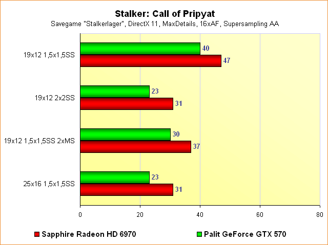 Radeon HD 6970 vs. GeForce GTX 570 - Benchmarks Stalker: Call of Pripyat - Supersampling