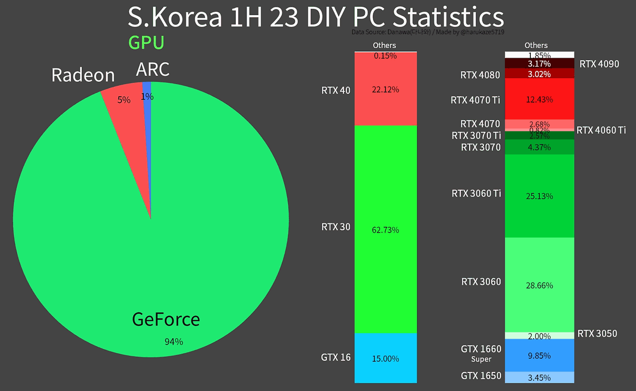 Retail-Grafikkartenmarkt in Südkorea H1/2023 lt. Danawa