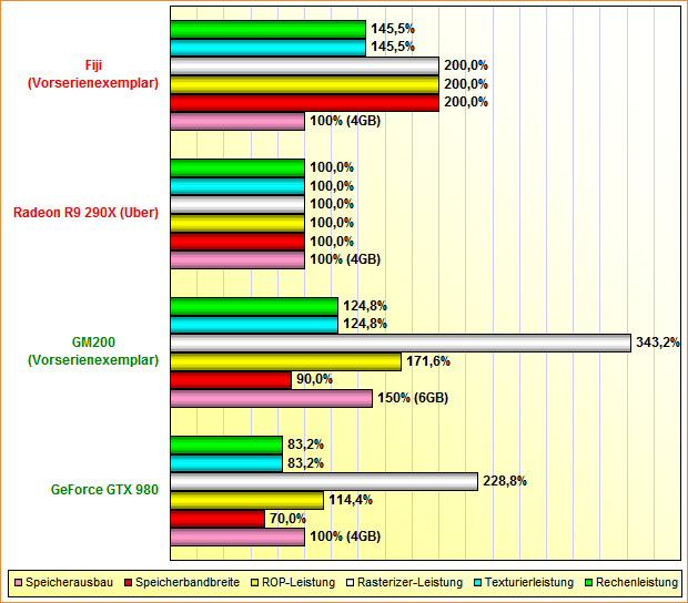 Rohleistungs-Vergleich GeForce GTX 980, GM200, Radeon R9 290X & Fiji
