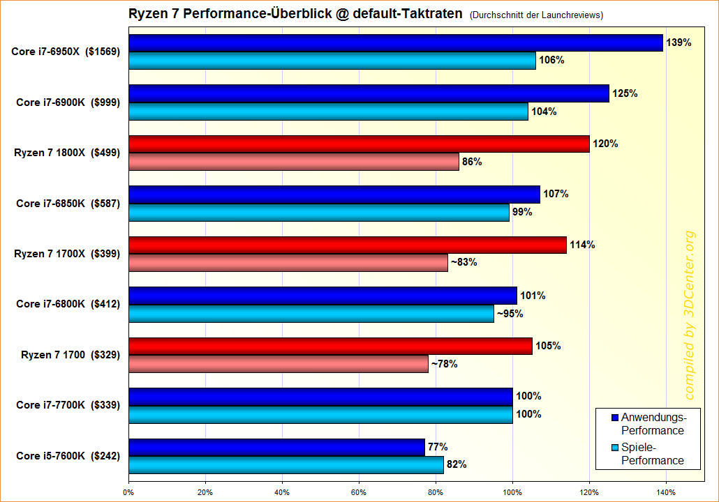Ryzen 7 Performance-Überblick @ default-Taktraten