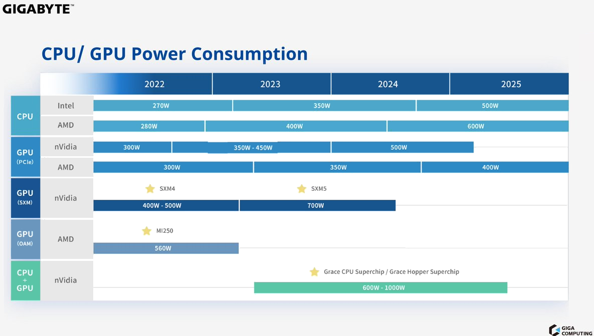 Server-CPU/GPU Stromverbrauchs-Roadmap 2022-2025