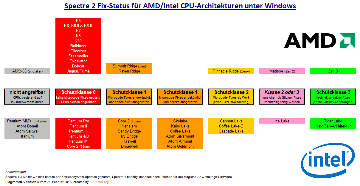 Spectre 2 Fix-Status für AMD/Intel CPU-Architekturen unter Windows (Version 5)