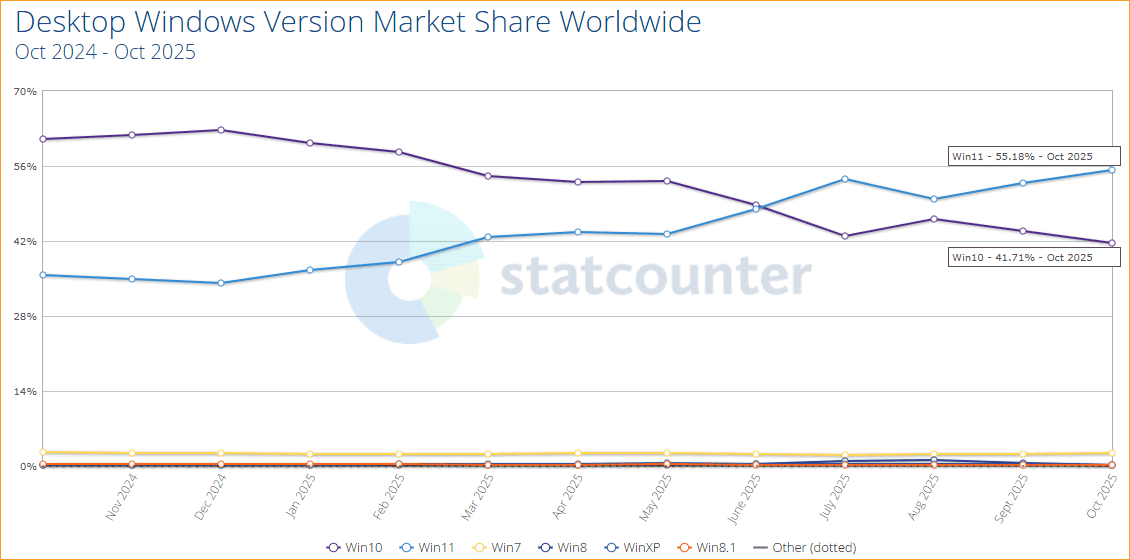 StatCounter Windows Versions-Verbreitung 2024/25 (korrigiert)