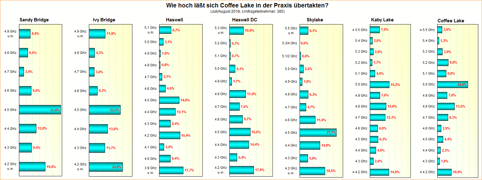 Umfrage-Auswertung: Wie hoch läßt sich Coffee Lake in der Praxis übertakten?