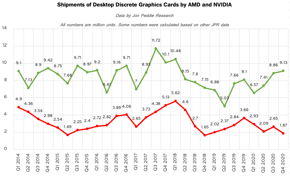 Verkaufszahlen Desktop-Grafikkarten 2014-2020 (quartalsweise)
