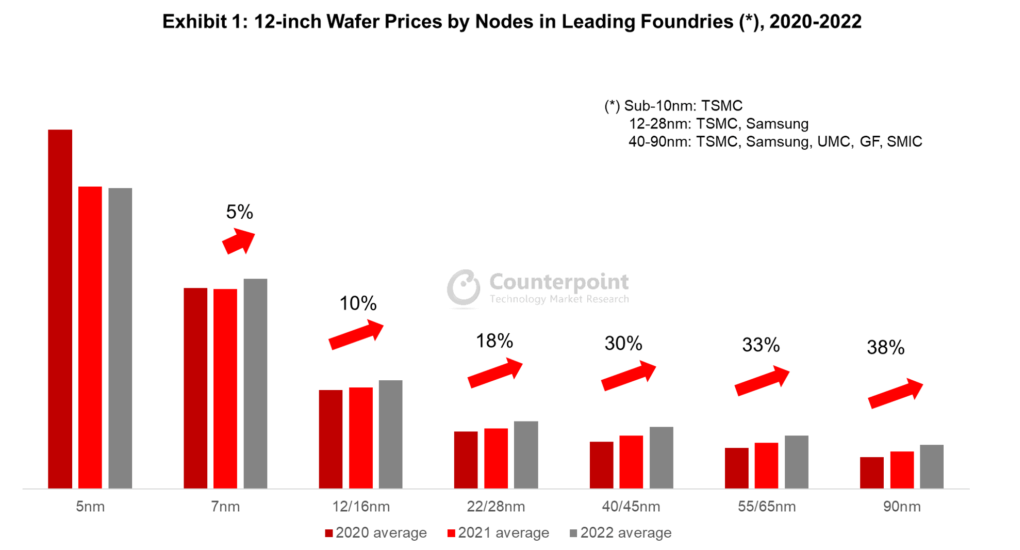 Wafer-Preisentwicklung 2020-2022 (by Counterpoint Research)