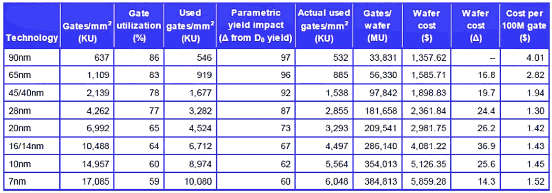 Waferpreise und Preis pro 100 Millionen Gates 90nm bis 7nm (Quelle: Qualcomm 2016)