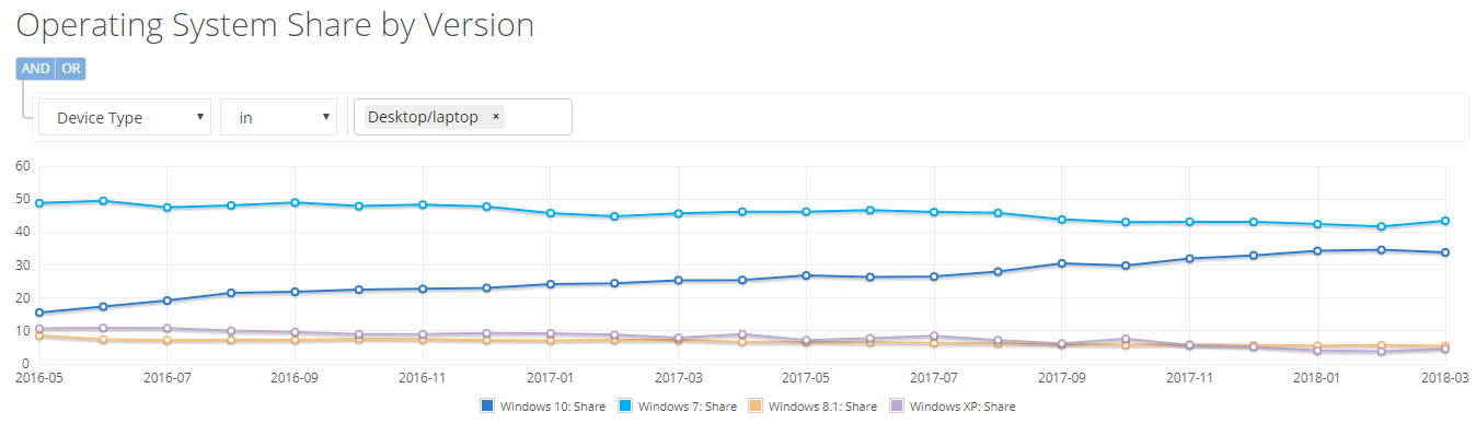 Weltweite Betriebssystem-Verteilung (PC) von Mai 2016 bis März 2018 (lt. NetMarketShare)
