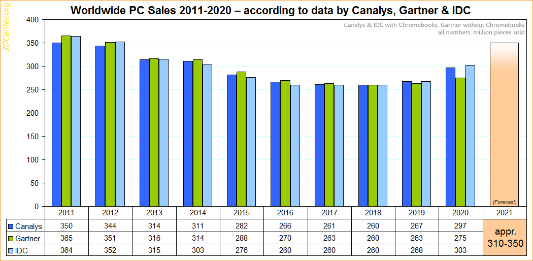 Weltweite PC-Verkäufe 2011-2020