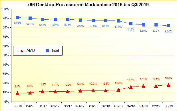 x86 Desktop-Prozessoren Marktanteile 2016 bis Q3/2019