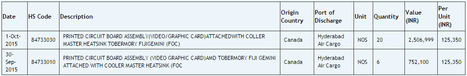 Zauba Importdatenbank (Oktober 2015)