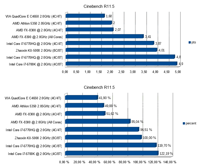 Zhaoxin ZX-5000 Cinebench R11.5 Benchmarks gegen AMD- und Intel-Prozessoren