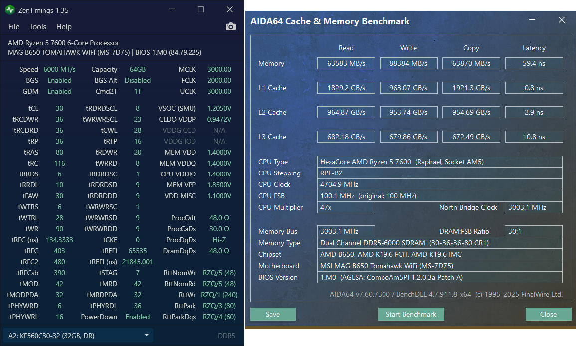 Beide Kits schaffen 6000 / CL28 / 1,35 V. (mit der Spannungskeule für RAM & IMC wäre auch 6400/CL28 drin, aber darauf verzichte ich im Interesse der Lebenserwartung)