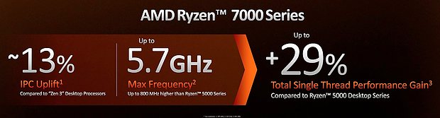 | Anmerkung: Alle Ryzen 7000-Prozessoren benutzen den Sockel AM5 und laufen somit nur auf Mainboards aus AMDs 600er Chipsatz-Serie. | ||||||