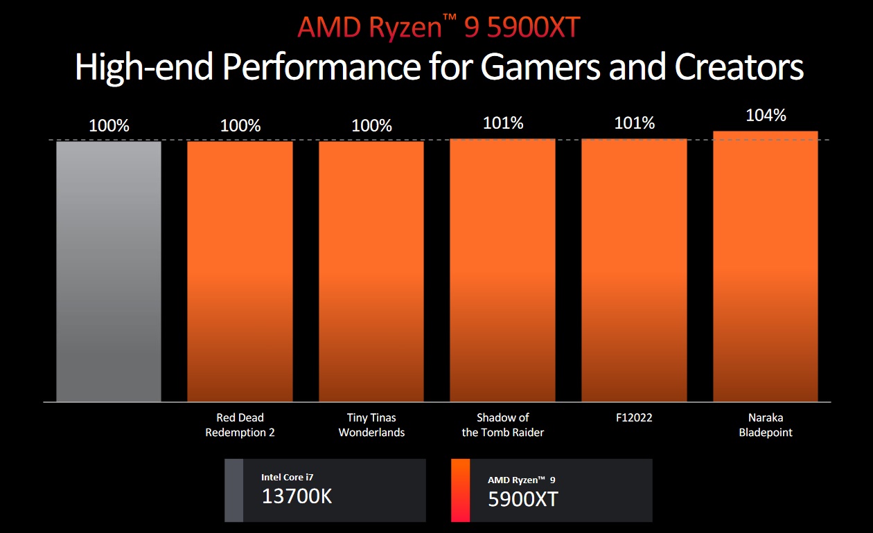 AMD-eigene Benchmarks Ryzen 9 5900XT vs Core i7-13700K