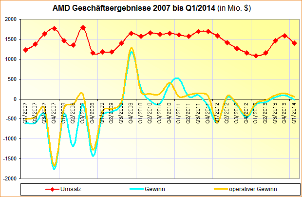 AMD Geschäftsergebnisse 2007 bis Q1/2014