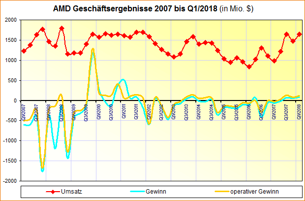 AMD Geschäftsergebnisse 2007 bis Q1/2018