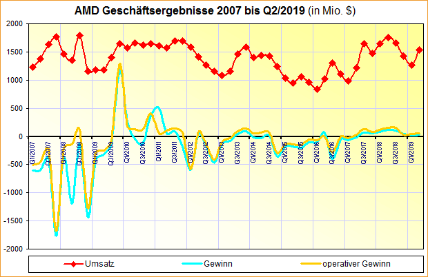 AMD Geschäftsergebnisse 2007 bis Q2/2019
