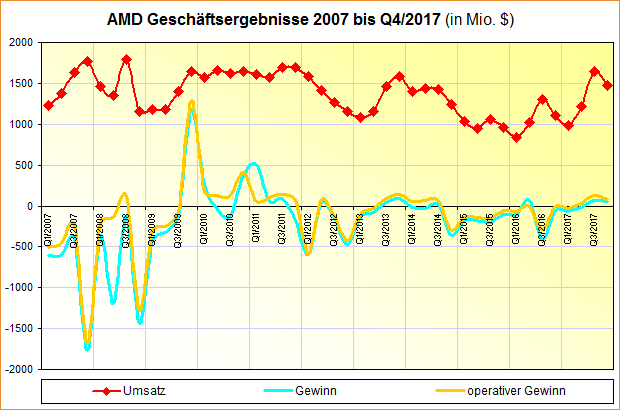 AMD Geschäftsergebnisse 2007 bis Q4/2017