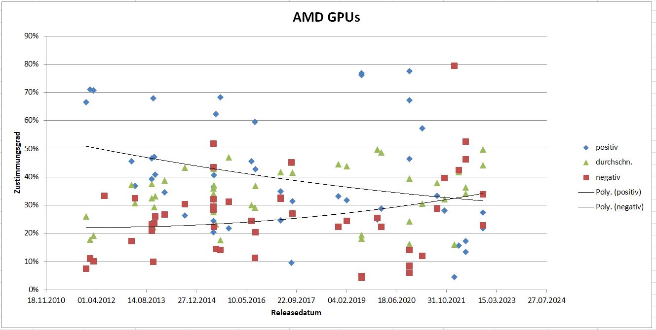 AMD Grafikkarten: Stimmungslage der Ersteindrucks-Umfragen 2012-2023